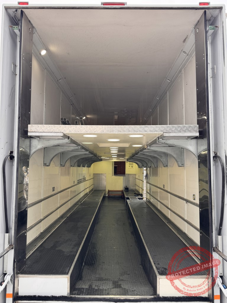 Twin Slide out pod race transporter with carrying capacity of 4 cars.