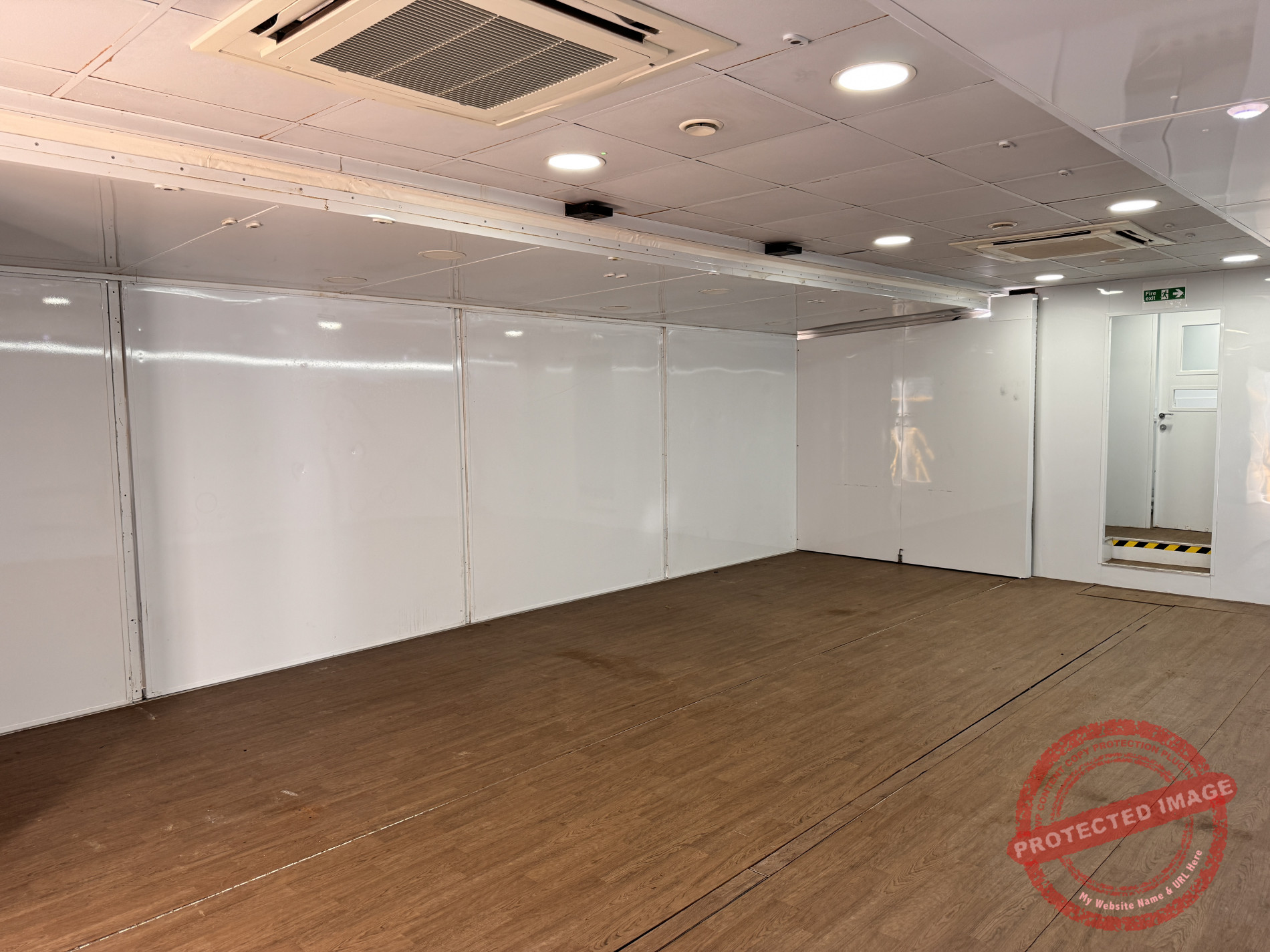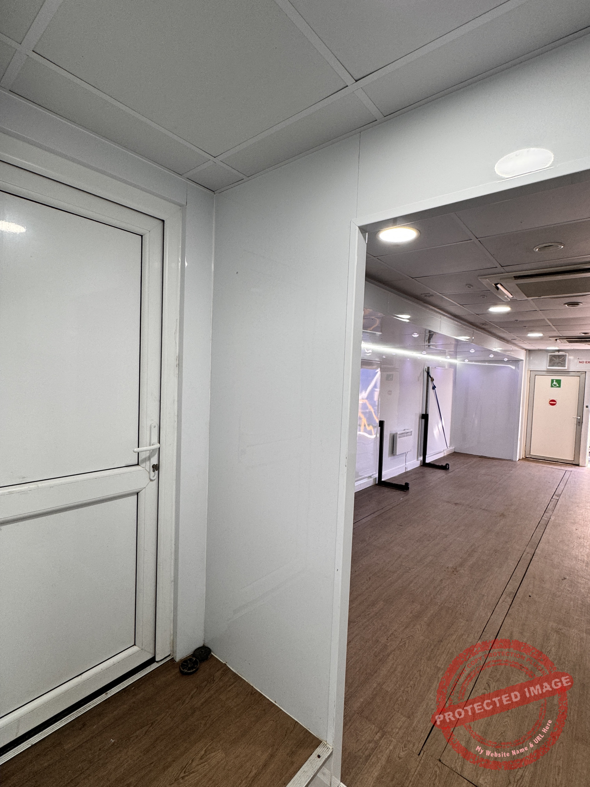 The unit is currently built as hospital units with 8 patients monitoring bays but can also be set up as a large open space with separate areas and storage. And a kitchen area at the front.